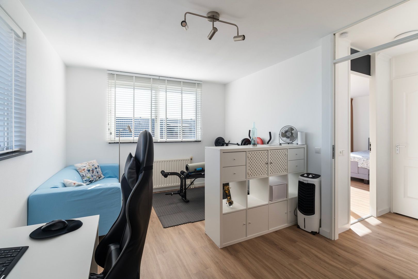 Overloop: vaste kast met opstelplaats cv-ketel. Moderne badkamer voorzien van ligbad, separate douche, dubbele wastafel en 2e toilet. Slaapkamer (H=2,49m) met kastenwand en toegang tot het zonnige terras. Tweede slaapkamer aan de voorzijde.