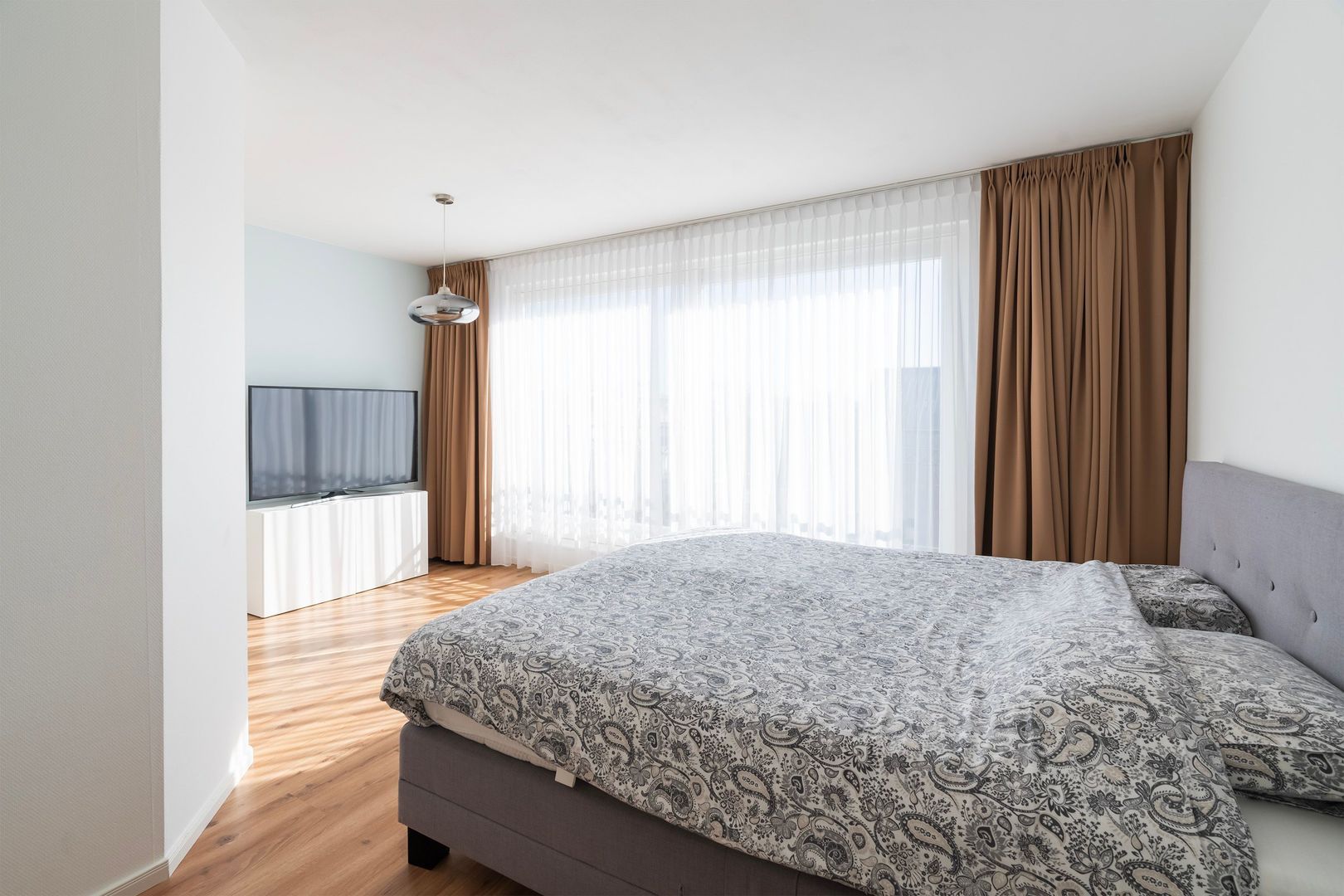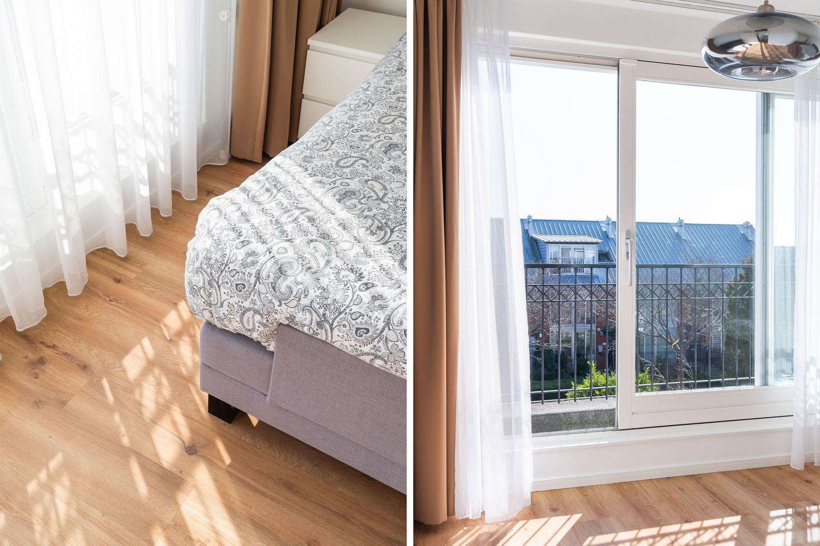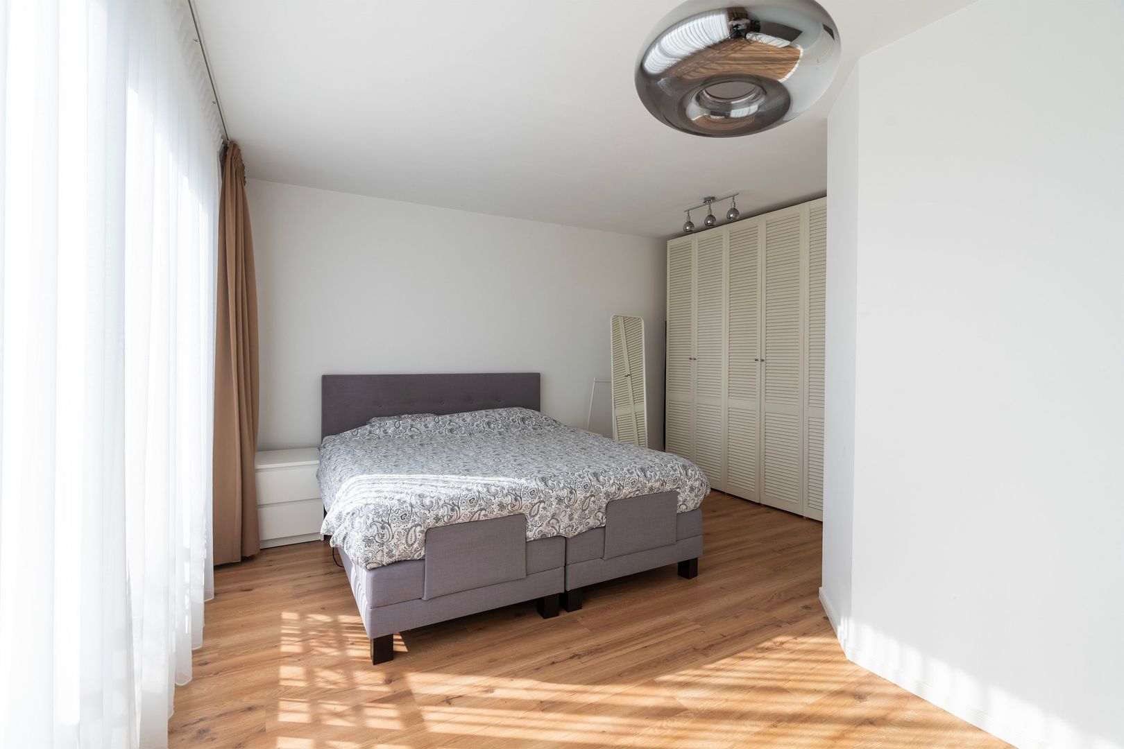 Overloop: 3e toilet met fonteintje. Ruime slaapkamer aan de linkerzijde (H=2,49m). Tweede ruime slaapkamer aan de rechterzijde met schuifpui en toegang tot het balkon.