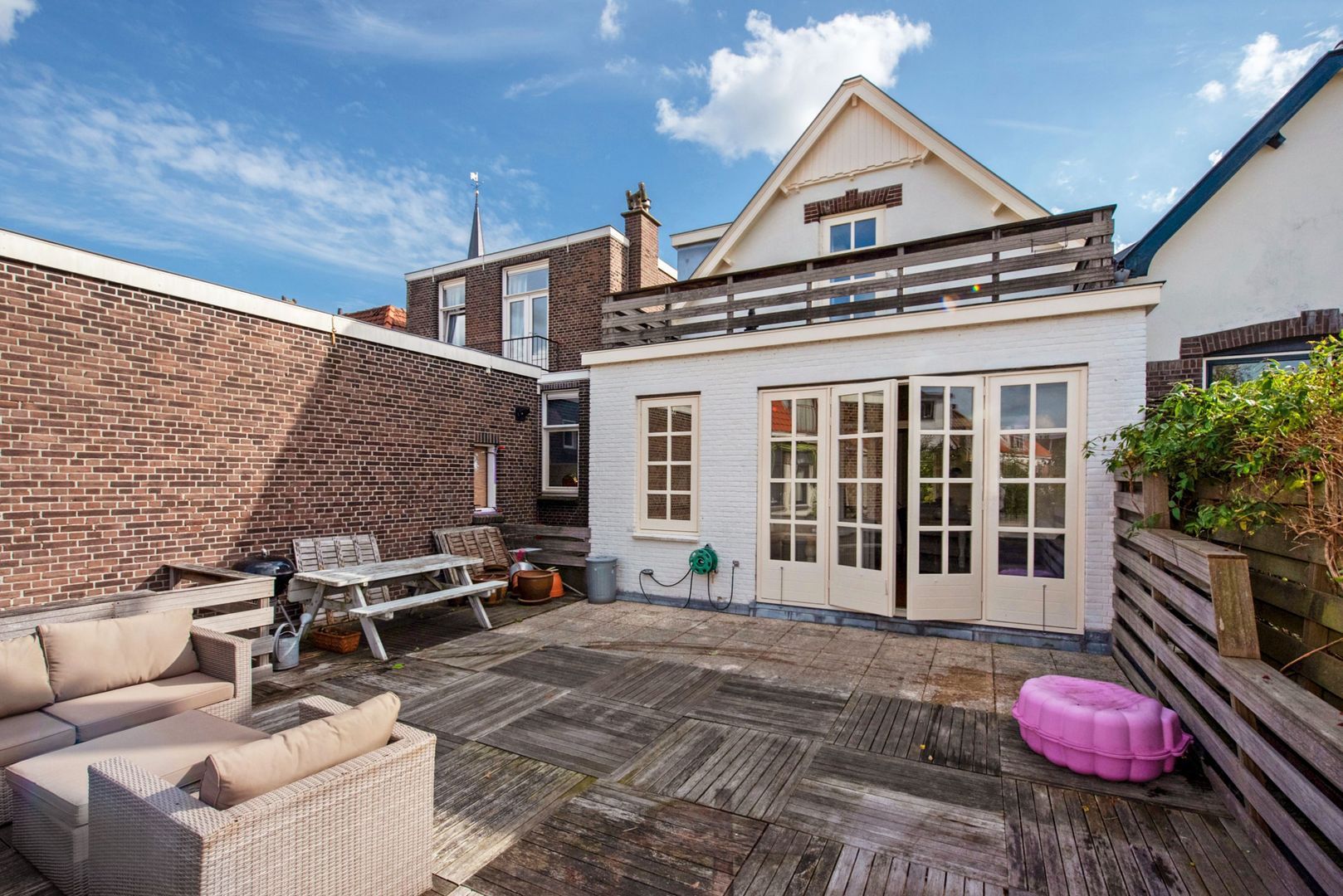 ruime overloop met modern (vrijdragend) toilet met fonteintje, zeer ruime sfeervolle L-vormige woonkamer en suite met bijgetrokken voorzijkamer en openslaande deuren naar het riante zonneterras (NO), ruime open keuken met zwart granieten werkblad en voorzien van diverse inbouwapparatuur, de gehele verdieping is voorzien van een massief eiken (brede) plankenvloer en zijn diverse bovenlichten voorzien van glas in lood ramen.