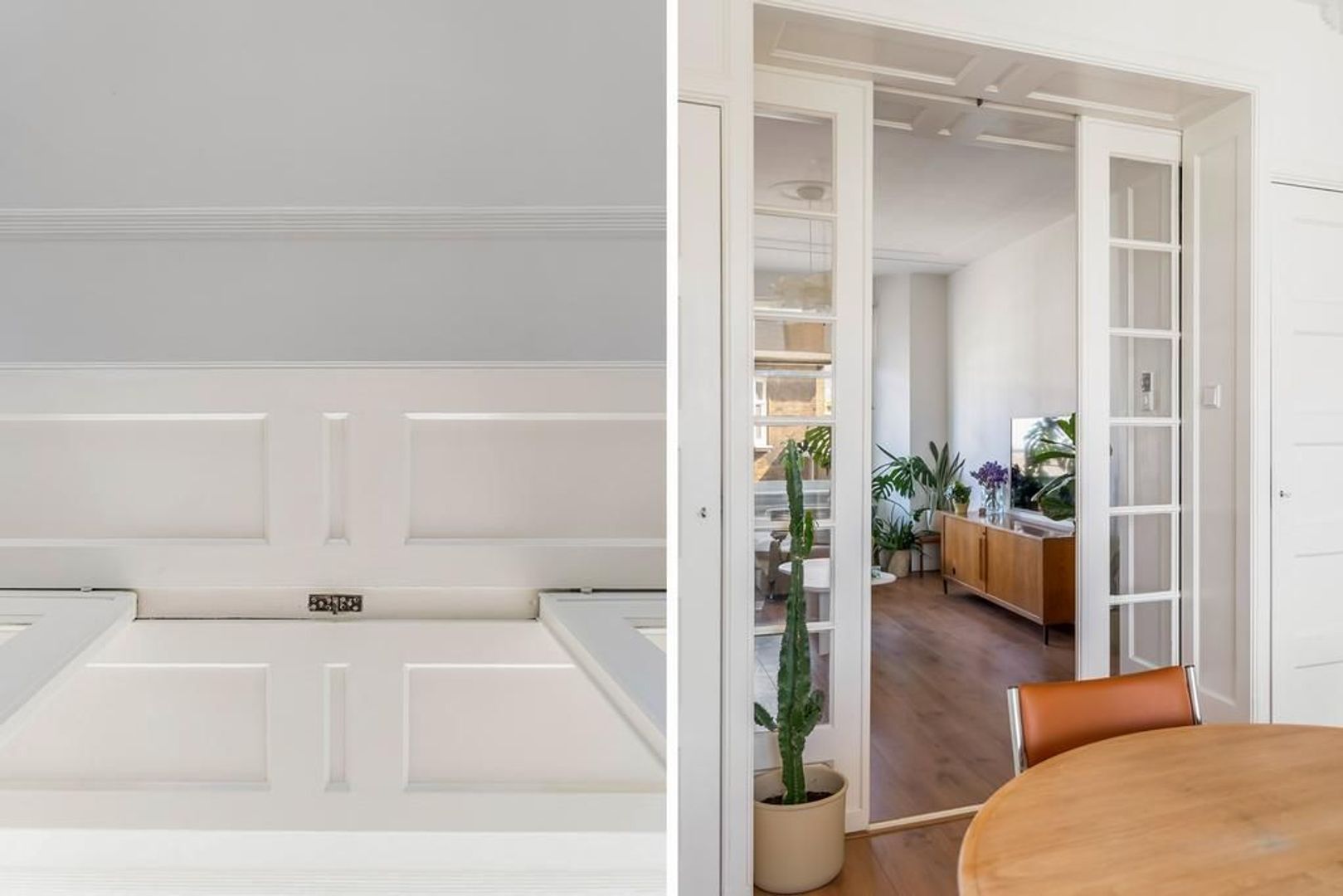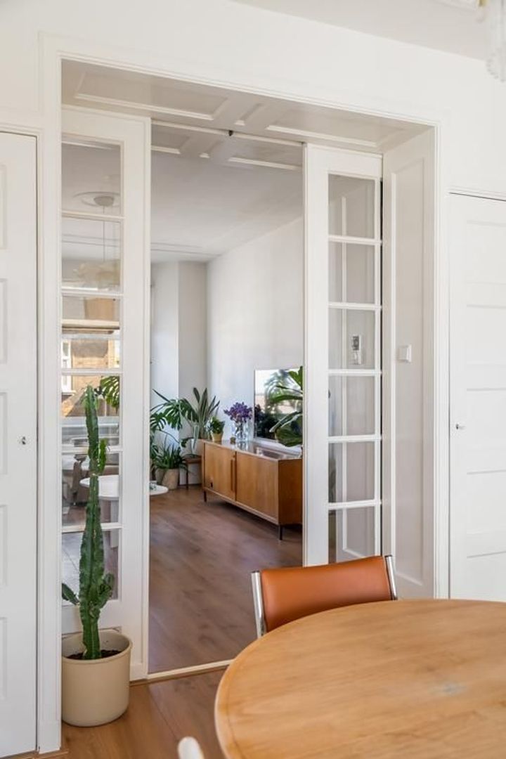 Voorburg Noord. Dit 4/5 kamer Topappartement (ca. 93 m²) op de 2e etage is zeer licht, sfeervol en uniek door zijn afwijkende lay-out. Eigen entree op de begane grond met ruimte om fietsen te plaatsen, groot trappenhuis, kamer ensuite met schouwen, geornamenteerde plafonds en paneeldeuren, grote slaapkamer en 2 goede bijkamers, 2 balkons. Echt een fraaie jaren '30 woning waarvan het karakter goed bewaard is gebleven, maar aangepast aan de hedendaagse eisen.