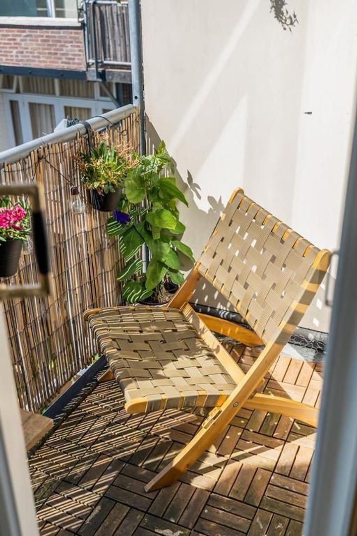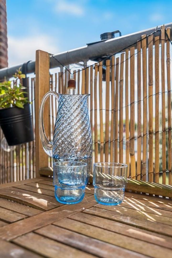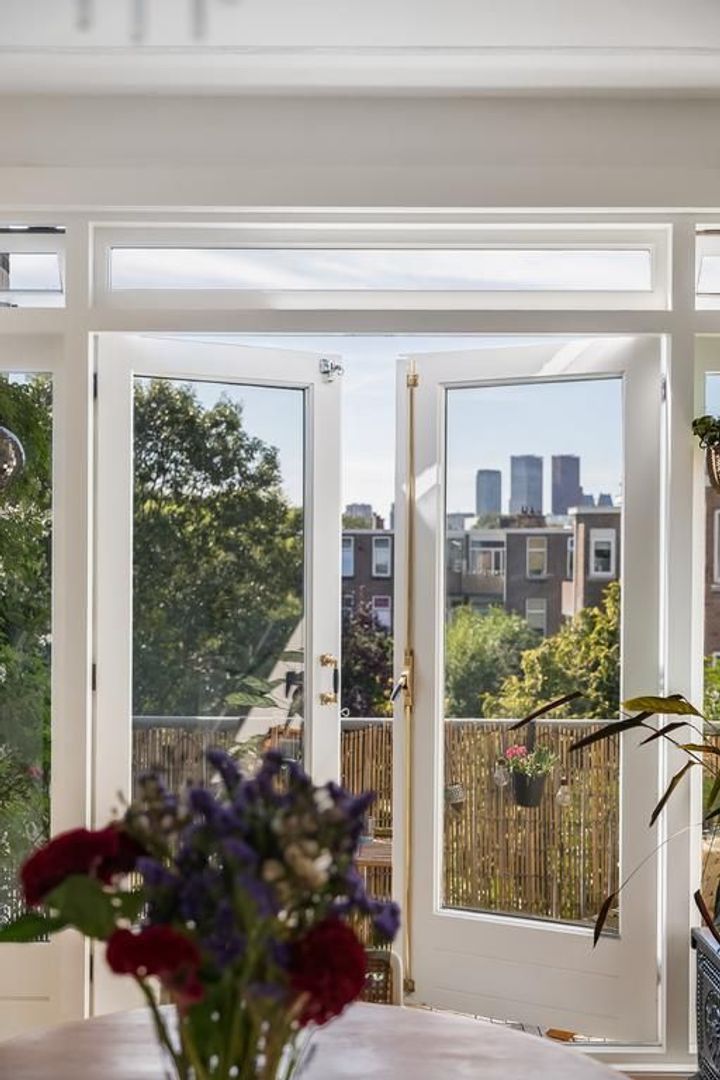Aan de achter(balkon)zijde is een wijds en vrij uitzicht waardoor de zon tot lang op het balkon staat.
